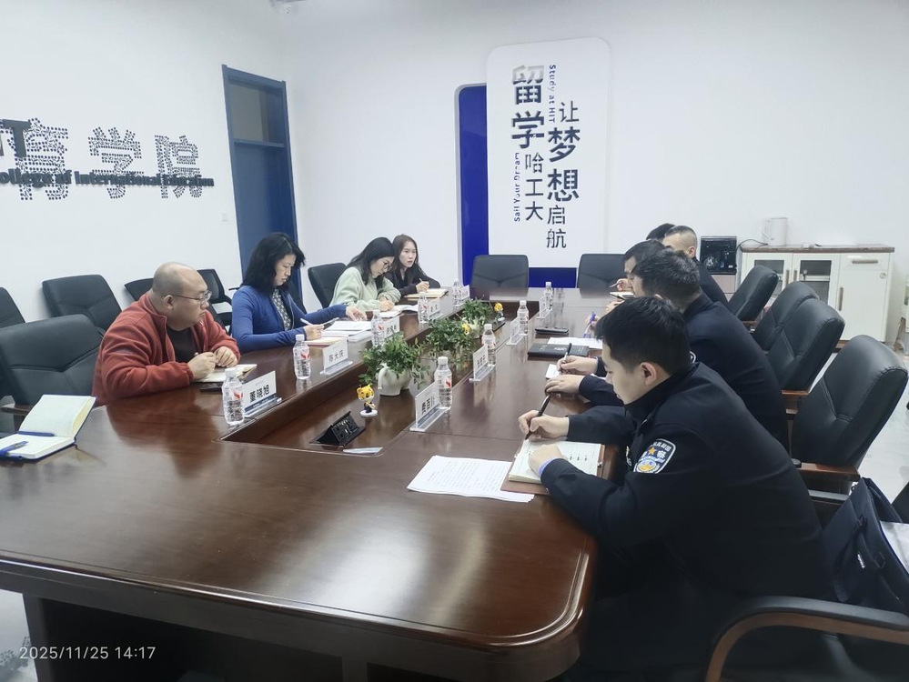(董曉旭/文)為深化校警聯(lián)動(dòng)機(jī)制,精準(zhǔn)對(duì)接涉外服務(wù)需求,助推學(xué)校國(guó)際化教育高質(zhì)量發(fā)展,11月25日,哈爾濱市公安局出入境管理局局長(zhǎng)趙洪偉一行到訪我校國(guó)際教育學(xué)院開展交流,會(huì)議由國(guó)際教育學(xué)院院長(zhǎng)趙異肖主持,國(guó)際教育學(xué)院相關(guān)人員參會(huì)。To deepen the campus-police collaboration mechanism, precisely addressforeign-related service demands, and boost the high-quality development of the university’s international education, on November 25, a delegation led by Zhao Hongwei, Director of the Exit-Entry Administration Bureau of Harbin Public Security Bureau, paid a visit tothe Collegeof International Education(CIE)of HIT.